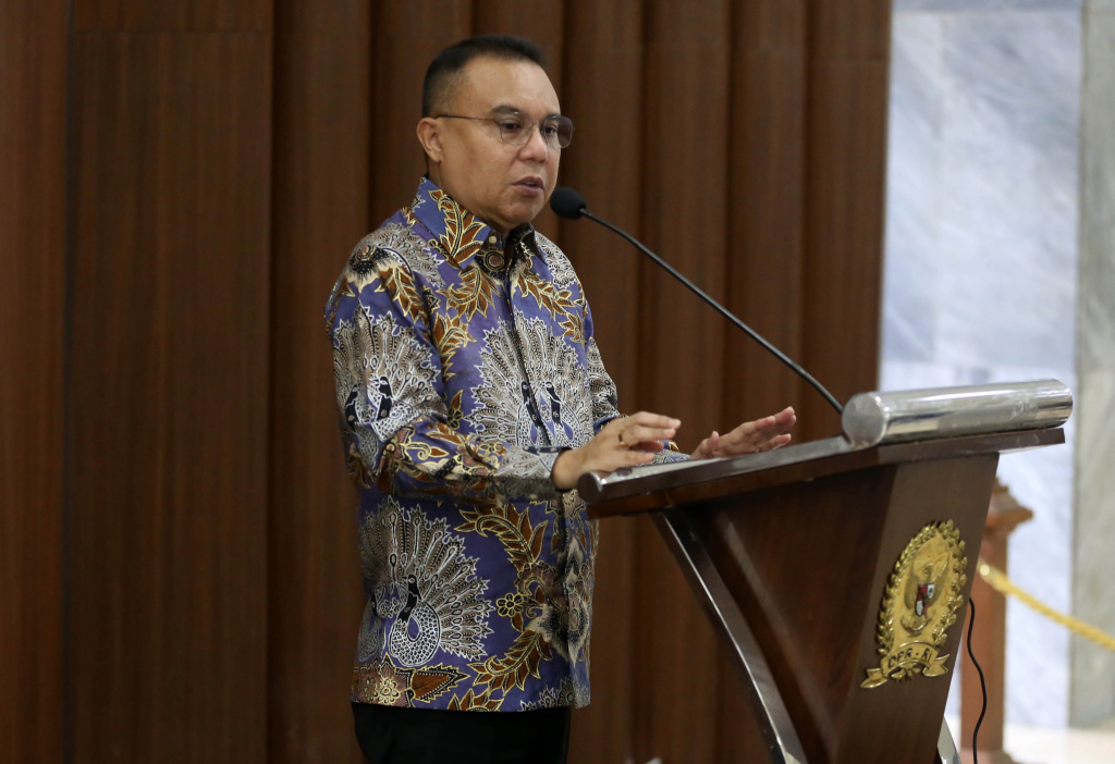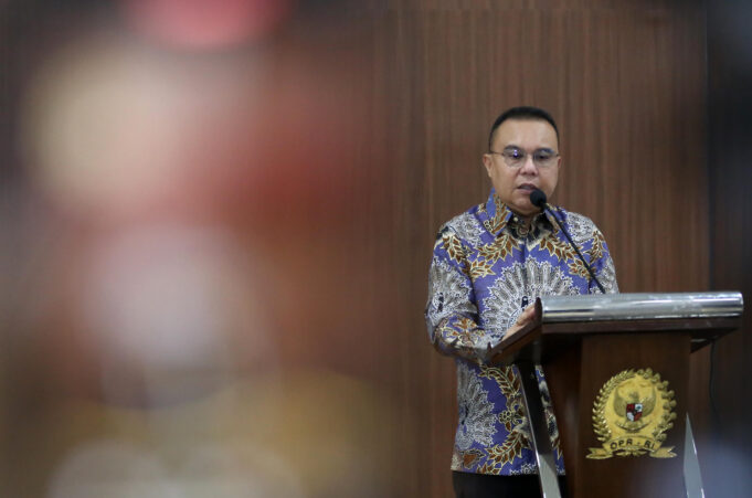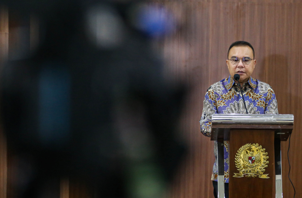 Wakil Ketua Dewan Perwakilan Rakyat Republik Indonesia (DPR RI), Sufmi Dasco Ahmad menyampaikan informasi mengapresiasi langkah pemerintah yang tidak menaikkan harga bahan bakar minyak (BBM) saat konferensi pers di Kompleks Parlemen Senayan, Jakarta, Selasa (31/3/2026). Aktual/TINO OKTAVIANO