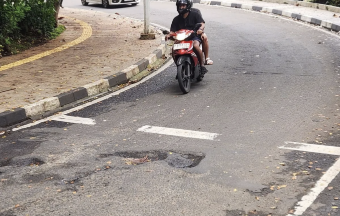 Salah satu contoh jalan berlubang terletak di Jalan Wolter Monginsidi. Akibat jalan rusak itu, laju kendaraan yang melintas harus melambat demi keselamatan pengendara.