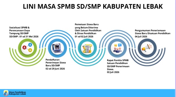 Doddy Irawan Kepala Dinas Pendidikan dan Kebudayaan Kabupaten Lebak mengatakan, untuk rangkaian kegiatan SPMB diawali dengan sosialisasi kepada masyarakat yang dijadwalkan berlangsung pada 1 hingga 31 Mei 2026.