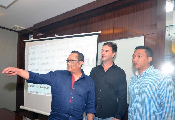 Founder and Managing Director NorthCliff Capital Pte.Ltd Erry Sulistio (kiri), Founder and Director Made Arie Wibawa ( kanan), Director Gede Arie Soetedja (kedua dari kiri) dan Founder & CEO delMango and delOne Seminyak Bali, Ronny Tome (tengah) ,disela mengumumkan rencana investasi properti dengan PT Ratu Prabu Energi Tbk, di Jakarta, Rabu (1/6). NorthCliff, perusahaan investasi yang fokus pada pembiayaan properti, minyak dan gas, mineral, serta infrastruktur, berafiliasi dengan PT Simasindo Intitama, menargetkan dalam 5 tahun kedepan dapat menjadi "Private Equity" tidak saja di Indonesia melainkan juga mancanegara.NorthCliff menyiapkan dana US$200 juta untuk membiayai proyek properti dan oil & gas milik ARTI. Sebagai gambaran, perusahaan investasi yang didirikan 5 tahun lalu ini untuk saat ini masih berfokus pada pembiayaan properti, minyak dan gas, mineral, serta infrastruktur. Aktual.news/Eko S Hilman