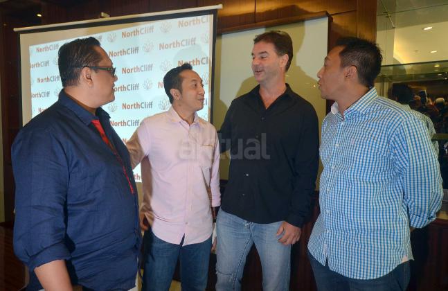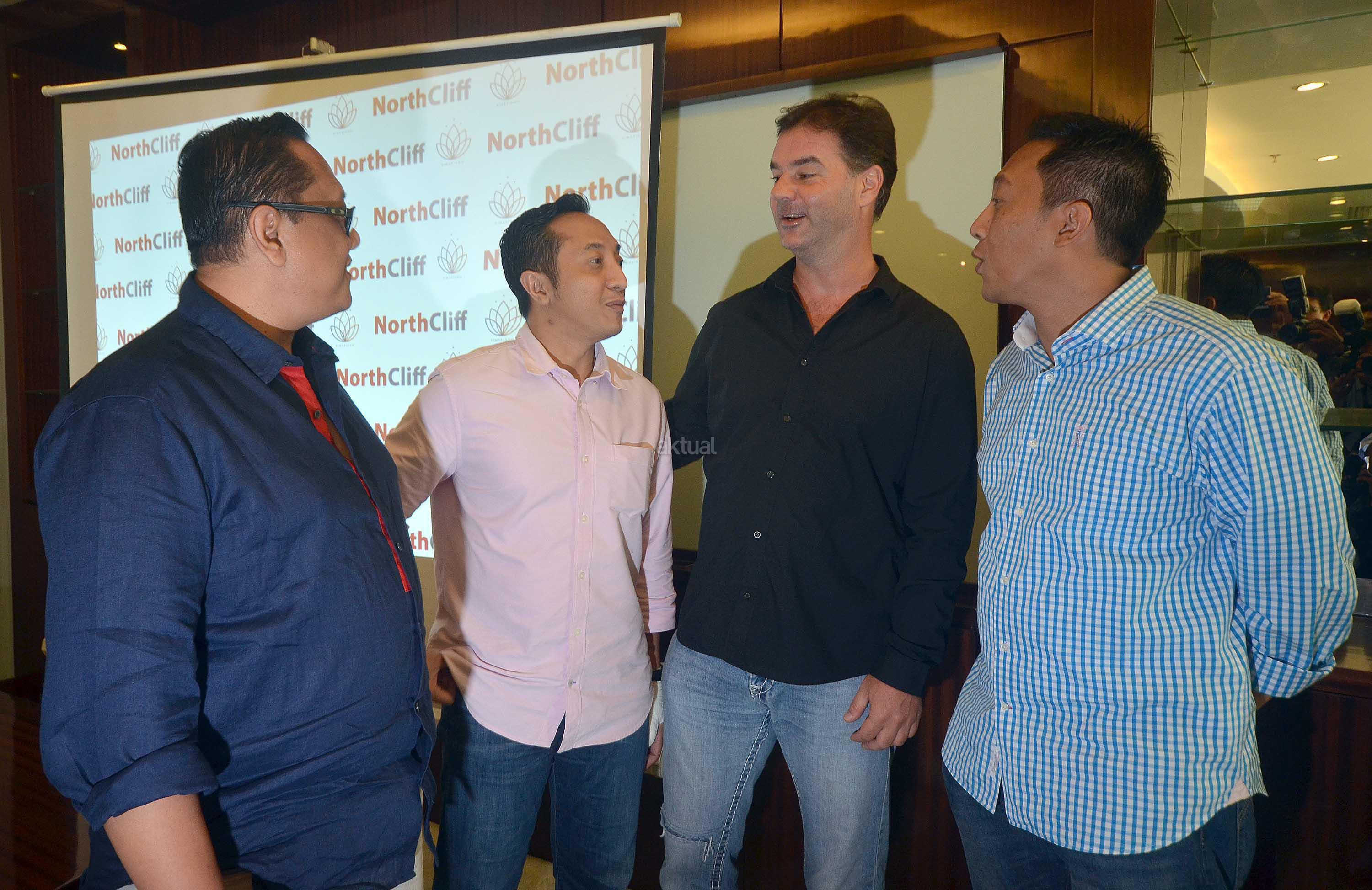 Founder and Managing Director NorthCliff Capital Pte.Ltd Erry Sulistio (kiri), Founder and Director Made Arie Wibawa (kanan) dan Director Gede Arie Soetedja (kedua kanan), berbincang dengan Founder & CEO delMango and delOne Seminyak Bali, Ronny Tome, disela pengumuman rencana investasi properti dengan PT Ratu Prabu Energi Tbk, di Jakarta, Rabu (1/6). NorthCliff, perusahaan investasi yang fokus pada pembiayaan properti, minyak dan gas, mineral, serta infrastruktur, berafiliasi dengan PT Simasindo Intitama, menargetkan dalam 5 tahun kedepan dapat menjadi "Private Equity" tidak saja di Indonesia melainkan juga mancanegara.NorthCliff menyiapkan dana US$200 juta untuk membiayai proyek properti dan oil & gas milik ARTI. Sebagai gambaran, perusahaan investasi yang didirikan 5 tahun lalu ini untuk saat ini masih berfokus pada pembiayaan properti, minyak dan gas, mineral, serta infrastruktur. Aktual.news/Eko S Hilman
