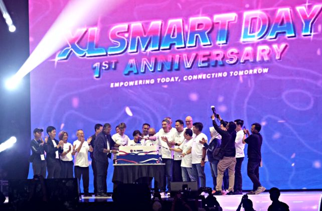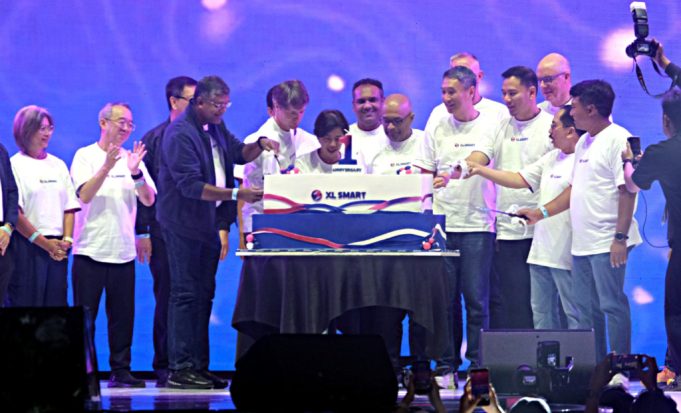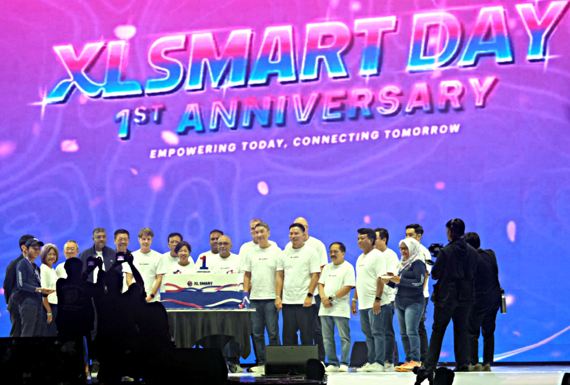 Direktur & Chief Technology Officer XLSMART, Shurish Subbramaniam, Direktur & Chief Commercial Officer XLSMART, David Arcelus Oses, Direktur & Chief Information Technology Officer XLSMART, Yessie D. Yosetya, Direktur & Chief Integration Officer XLSMART, Sanjey Vaghasia, Direktur & Chief Financial Officer, Antony Susilo, Direktur & Chief Strategy & Home Business Officer XLSMART, Feiruz Ikhwan, Direktur & Chief Regulatory Officer XLSMART, Merza Fachys dan Direktur & Chief People Officer XLSMART Jeremiah Ratadhi melakukan seremoni simbolis dalam rangka perayaan satu tahun perjalanan perusahaan di ICE BSD, Tangerang Selatan, Banten, Sabtu (25/4/2026). Momentum anniversary ini menjadi penanda capaian strategis XLSMART dalam memperkuat kinerja bisnis, kualitas jaringan, serta menghadirkan pengalaman digital terbaik bagi pelanggan di seluruh Indonesia. Perayaan ini turut dihadiri ribuan karyawan beserta keluarga, mitra, dan masyarakat sebagai wujud apresiasi perusahaan terhadap peran seluruh ekosistem dalam mendukung pertumbuhan XLSMART, sekaligus memperkuat komitmen perusahaan dalam membangun budaya kerja yang kolaboratif, inklusif, dan berorientasi pada pelanggan. Aktual/TINO OKTAVIANO