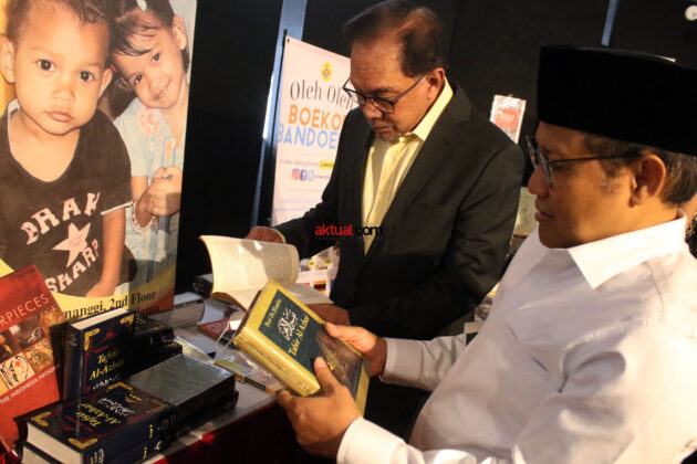 Seremoni pembukaan pameran foto yang di dampingin Wakil Ketua DPR RI, Muhaimin Iskandar. Foto: Aktual / Ahmad Warnoto. Anwar Ibrahim dan Muhaimin Iskandar saat menilik salah satu isi buku yang dipamerkan. oto: Aktual / Ahmad Warnoto.