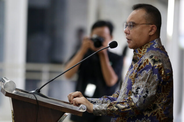 Wakil Ketua Dewan Perwakilan Rakyat Republik Indonesia (DPR RI), Sufmi Dasco Ahmad menyampaikan informasi mengapresiasi langkah pemerintah yang tidak menaikkan harga bahan bakar minyak (BBM) saat konferensi pers di Kompleks Parlemen Senayan, Jakarta, Selasa (31/3/2026). Aktual/TINO OKTAVIANO