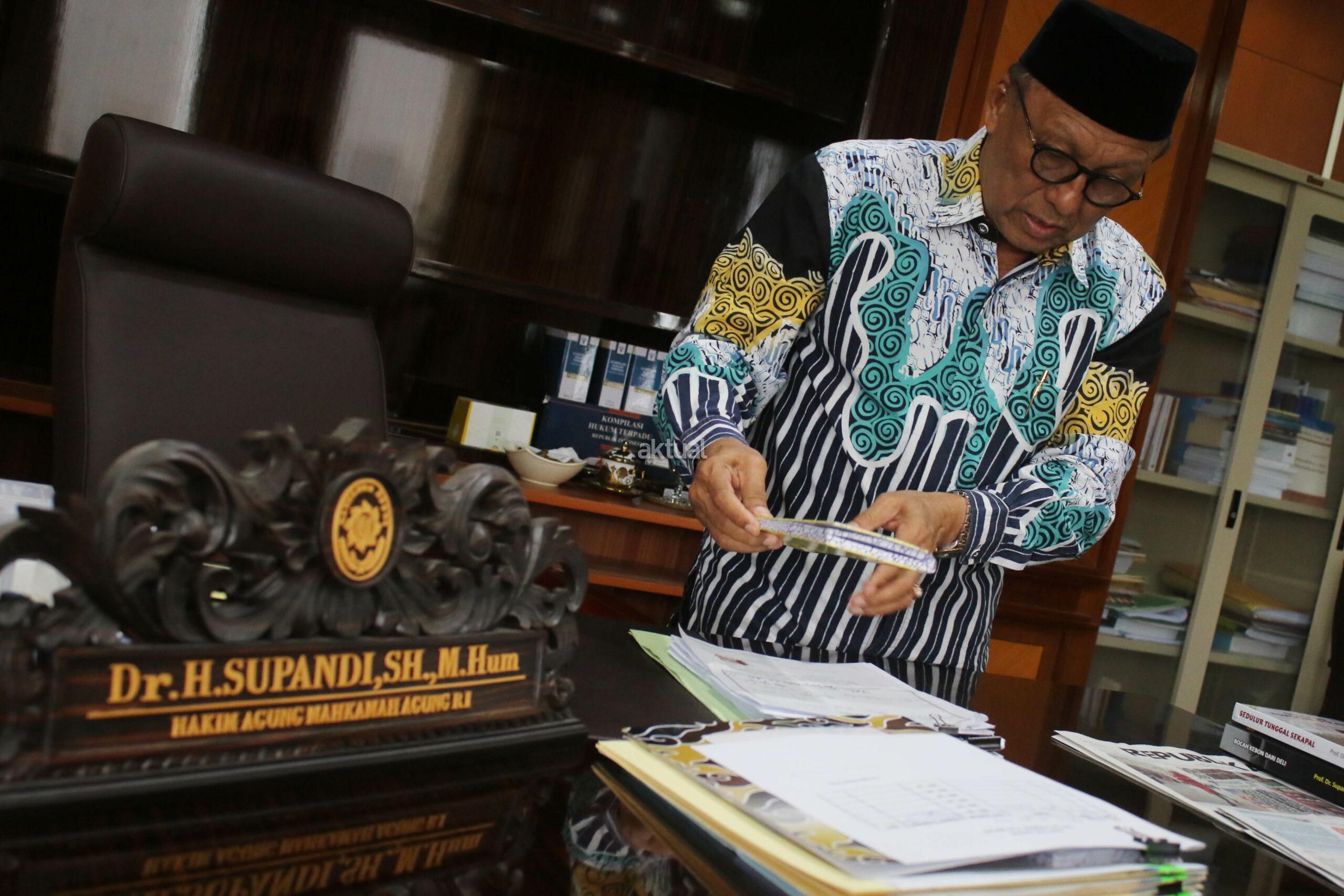 Prof Supandi saat ini telah menapaki usia 70 tahun. Pada masa-masa terakhir beliau di Mahkamah Agung, tim Aktual secara eksklusif diperkenan mengabadikan aktifitas tugas sembari mengkemasi sejumlah barang milik pribadi diruang kerja, Kamis (29/9).