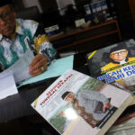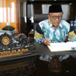 Prof Supandi tampak sedang merapihkan sejumlah dokumen dan buku dalam ruang kerja. Foto: Aktual / Ahmad Warnoto.
