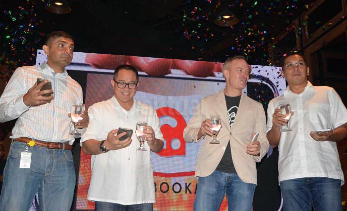 President Director Alexander Rusli (dua kiri) bersama dengan Chief Digital Services Officer Indosat, Prashant Gokarn (kiri), Division Head E-Commerce Indosat, Carlos Karo Karo (kanan) dan Founder Bookmate, Simon Dunlop (dua kanan), saat peluncuran Cipika Bookmate di Jakarta, Senin (24/8/2015). Indosat, anggota dari Grup Ooredoo menghadirkan inovasi layanan aplikasi buku digital dengan nama Cipika Bookmate yang memberikan kemudahan dan kenyamanan bagi para pencinta buku di Indonesia. Cipika Bookmate merupakan layanan aplikasi buku digital pertama di Indonesia yang menyajikan konsep berlangganan layaknya perpustakaan dengan membayar satu kali dan bisa membaca sepuasnya. Pelanggan bebas membaca buku apa saja yang tersedia di dalam Cipika Bookmate dengan total 500 ribu judul internasional dan 4 ribu judul lokal, melalui ponsel maupun desktop meskipun tanpa koneksi internet. AKTUAL/EKO S HILMAN