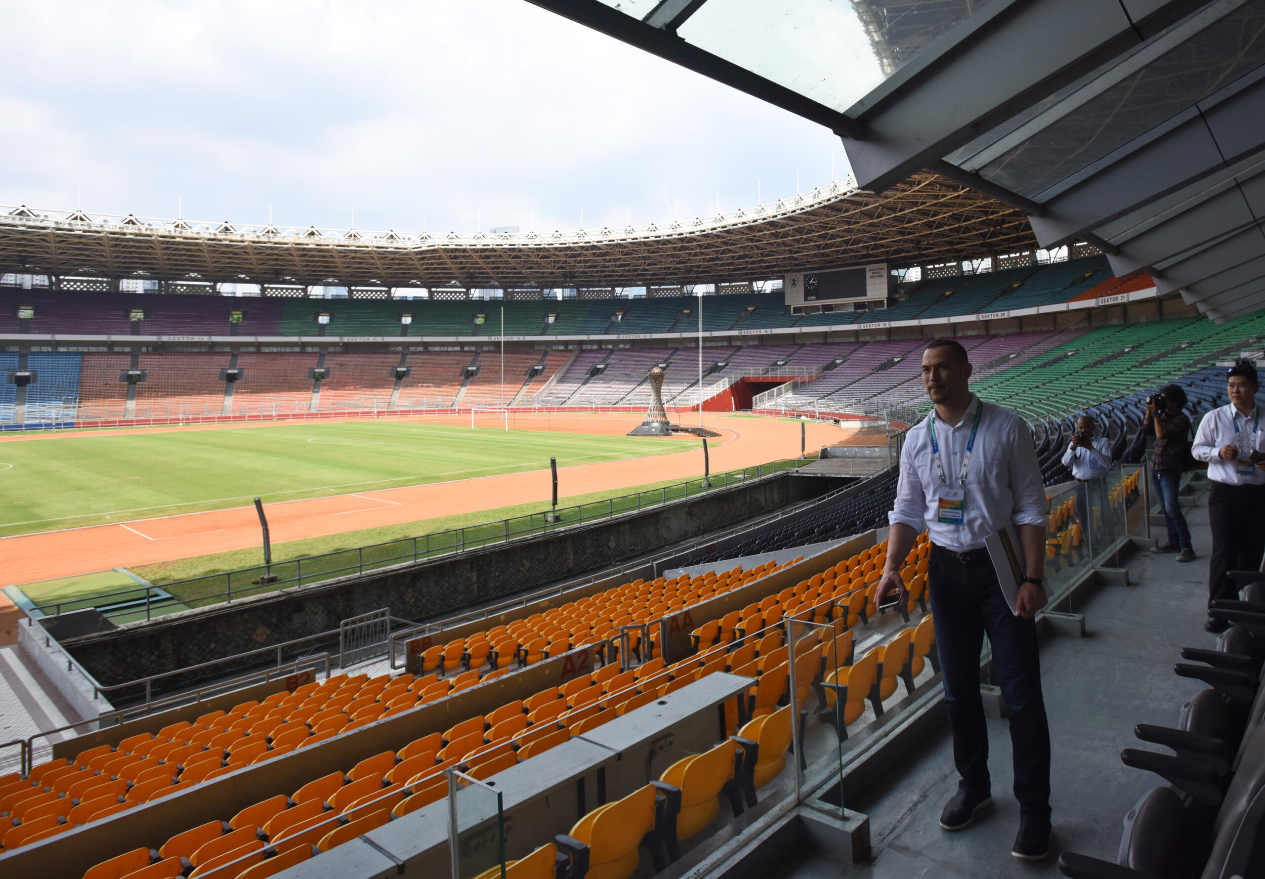 Delegasi Dewan Olimpiade Asia (OCA) meninjau Venue Stadion Utama Gelora Bung Karno yang akan di renovasi untuk kejuaraan Asian Games 2018 di Jakarta, Selasa (10/5). Renovasi GBK yang akan digunakan sebagai lokasi pembukaan dan penutupan Asian Games 2018 itu akan dimulai pada Juni mendatang. ANTARA FOTO/Wahyu Putro A/foc/16.