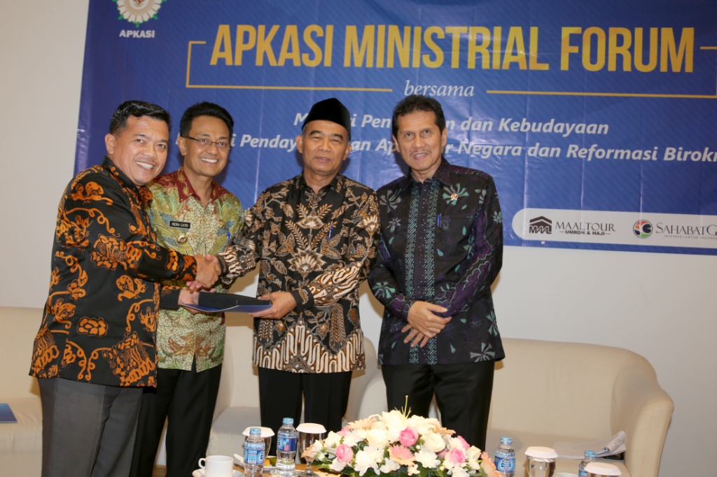 Asosiasi Pemerintah Kabupaten Seluruh Indonesia (Apkasi) mengajak Bupati dan pejabat Kabupaten berdialog dengan Mendikbud dan Menpan-RB dalam acra Ministrial Forum dengan tema menyikapi situasi Gawat Darurat Guru. AKTUAL/Eko S Hilman