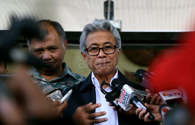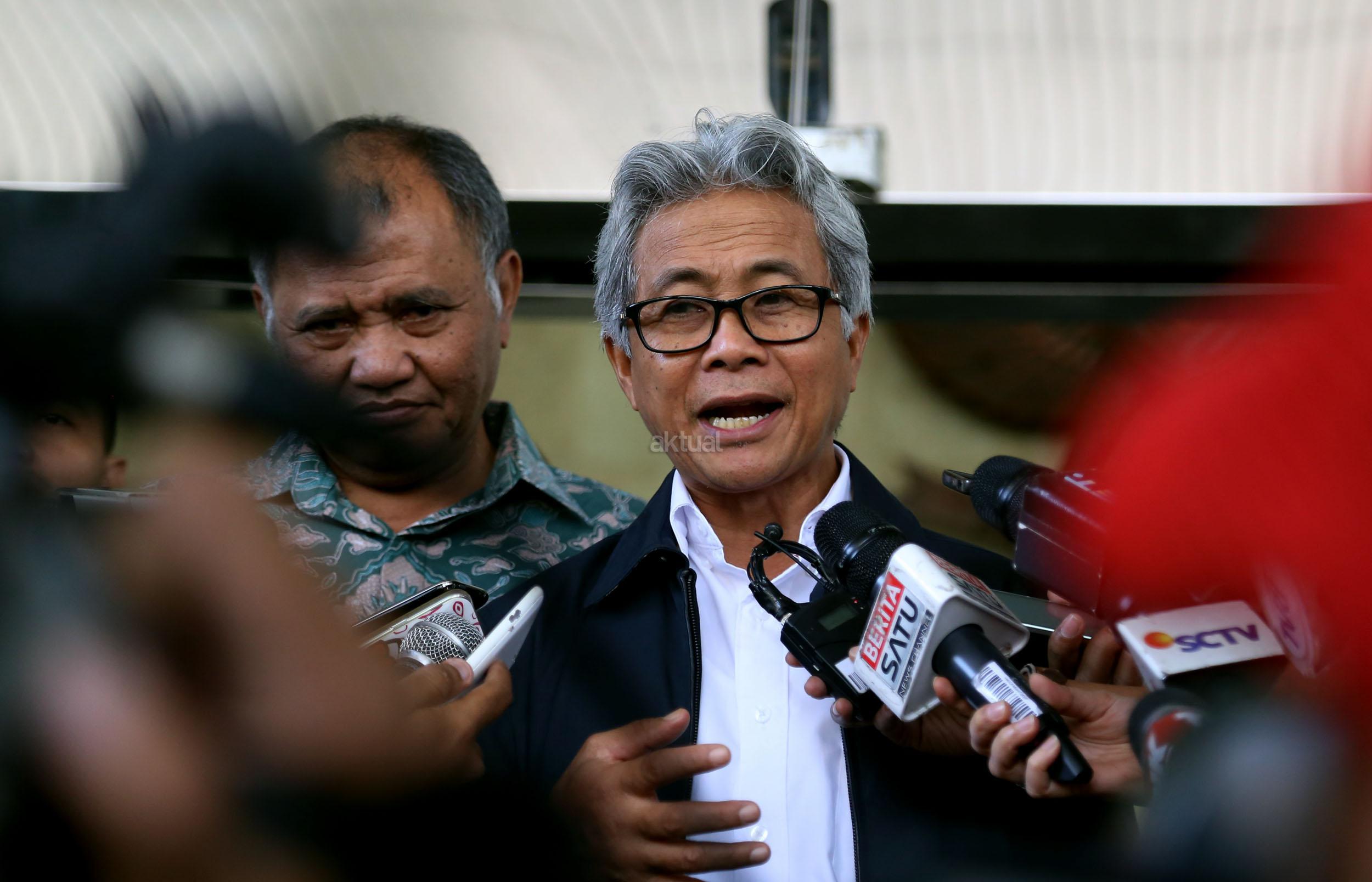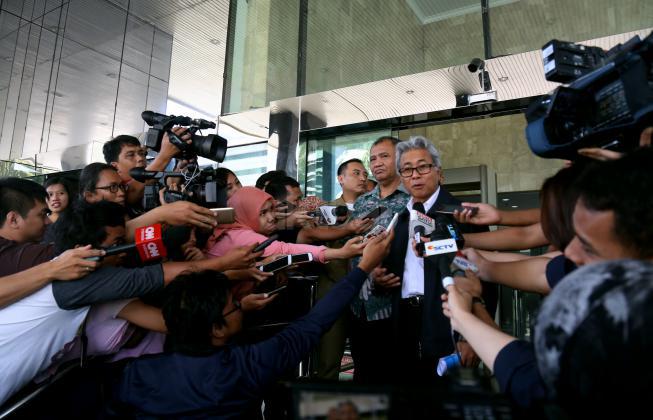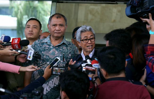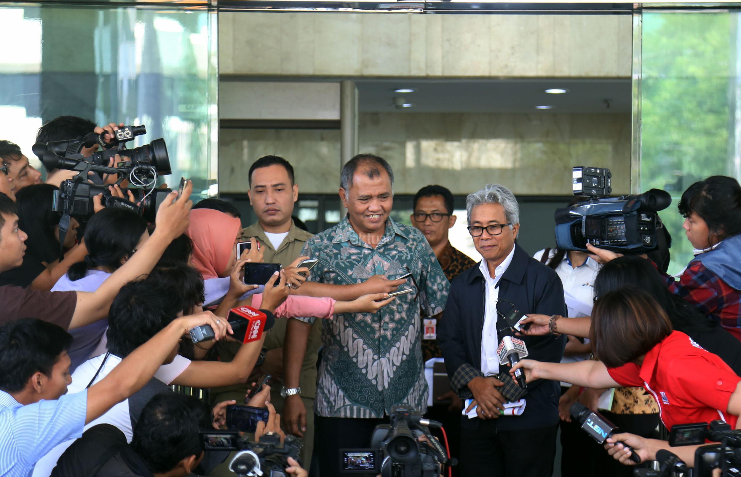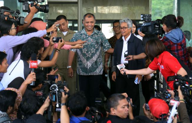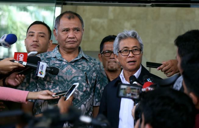 Ketua KPK Agus Rahardjo ( kiri) saat bersama Direktur Utama ?PT Pertamina Dwi Soetjipto (kanan) usai melakukan pertemuan di gedung KPK, Jakarta, Kamis (24/3/2016). Dalam pertemuan tersebut KPK mengajak Pertamina untuk membahas kajian tata kelola minyak dan gas bumi di tanah air.