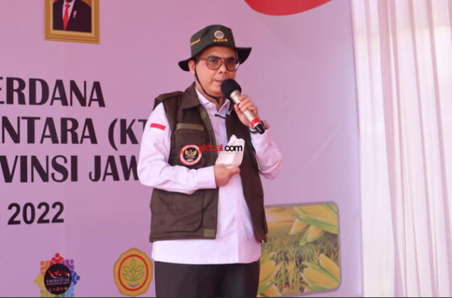 Wamentan Harvick Hasnul Qolbi, saat memberikan sambutan dalam giat Panen Raya Perdana di Kawasan Terpadu Nusantara Kecamatan Turen, Kabupaten Malang. Foto: Ist.