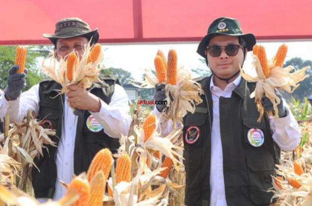 Wamentan, Harvick Hasnul Qolbi (kanan) bersama Kepala BNPT, Komjen Pol Boy Rafli Amar (kiri) saat memerkan hasil panen. Foto: Ist