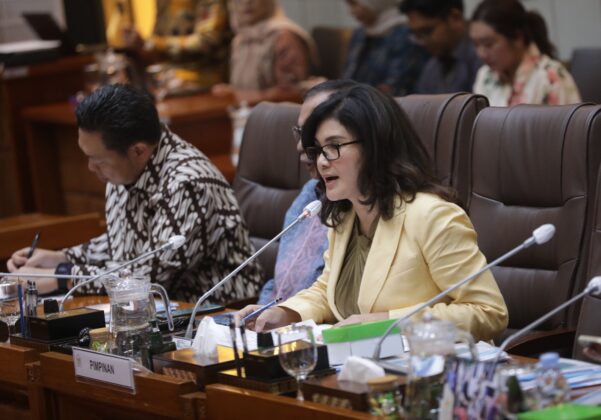 Ketua Komisi IX DPR RI, Felly Estelita Runtuwene saat memimpin rapat kerja bersama Menteri Kesehatan dan Menteri Sosial rapat kerja dengan Komisi IX DPR di Kompleks Parlemen, Senayan, Jakarta, Rabu (15/4/2026). Aktual/TINO OKTAVIANO