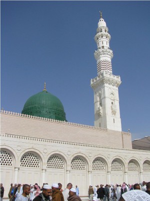 Kubah yang ada di atas kuburan Nabi sallallahu’alaihi wa sallam, dahulu tidak ada hingga abad ketujuh. Yang (pertama kali) membangunnya adalah Sultan Qalawun. Dahulu berwarna kayu, kemudian berwarna putih, biru dan hijau. Dan warna hijau yang berlanjut hingga sekarang.