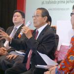 Direktur Utama PT Trafoindo Prima Perkasa (Trafoindo) Suryono Limputra menjawab pertanyaan media usai Due Diligence Meeting & Public Expose di Jakarta, Senin (22/5). Sejumlah 1.201.628.000 lembar saham atau 16,67% dari enlarged capital dan setiap saham memiliki nilai nominal sebesar Rp 100 dengan kebijakan dividen sebanyak-banyaknya 50% dari total laba bersih tahun berjalan. Penjualan Bersih Trafoindo mencapai Rp 1,342 miliar, mengalami peningkatan dibandingkan dengan tahun 2015 yang hanya mencapai Rp 1,126 miliar. Laba Usaha di tahun 2016 sebesar Rp 215 miliar juga mengalami kenaikan bila dibandingkan dengan tahun 2015 yang mencapai Rp 189 miliar. Trafoindo optimis laba tersebut akan meningkat setiap tahunnya, mengingat Perseroan terus mengembangkan kualitas Produk dan meningkatkan pelayanannya. AKTUAL/Eko S Hilman