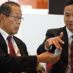 Direktur Utama PT Trafoindo Prima Perkasa (Trafoindo) Suryono Limputra (kiri) dan Direktur Marketing David Cahaya Limputra berbincang usai Due Diligence Meeting & Public Expose di Jakarta, Senin (22/5). Sejumlah 1.201.628.000 lembar saham atau 16,67% dari enlarged capital dan setiap saham memiliki nilai nominal sebesar Rp 100 dengan kebijakan dividen sebanyak-banyaknya 50% dari total laba bersih tahun berjalan. Penjualan Bersih Trafoindo mencapai Rp 1,342 miliar, mengalami peningkatan dibandingkan dengan tahun 2015 yang hanya mencapai Rp 1,126 miliar. Laba Usaha di tahun 2016 sebesar Rp 215 miliar juga mengalami kenaikan bila dibandingkan dengan tahun 2015 yang mencapai Rp 189 miliar. Trafoindo optimis laba tersebut akan meningkat setiap tahunnya, mengingat Perseroan terus mengembangkan kualitas Produk dan meningkatkan pelayanannya. AKTUAL/Eko S Hilman