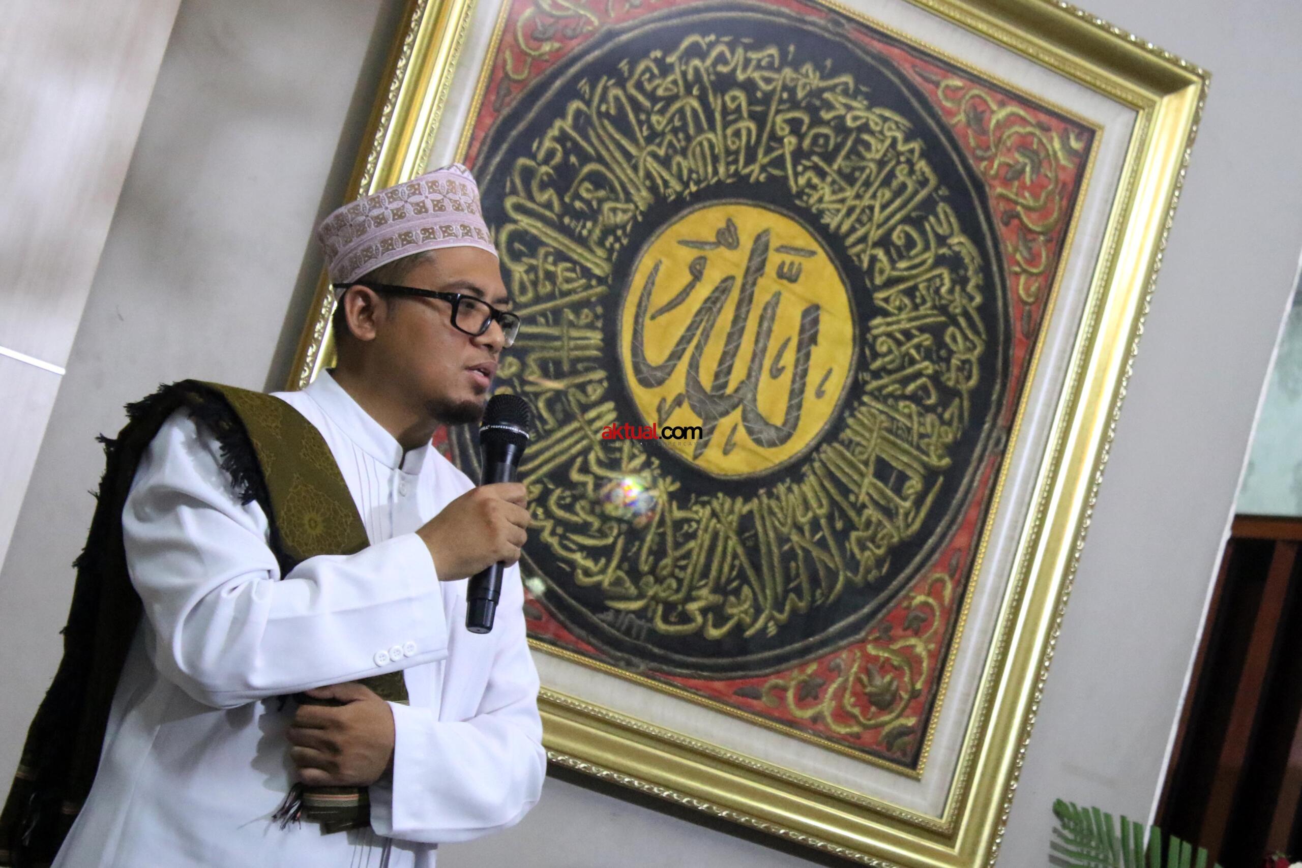 Khodim Maulana Syaikh Dr. Yusri Rusydi Sayyid Jabr Al-Hasani, Mesir, Dr (C). Abdullah Yusri (Antony Oktavian), Lc, M.A. saat memberikan tausiyah singkat dalam rangkaian acara peringatan Haul Quthbul Aqthab Wa Kahfi Amni at-Thullab Syaikhul A’dzom Sayyiduna Al-‘Arif Billah Al-Mursyidul Kamil Al-Mukamil Al-Imam Abul Hasan ‘Aliy As-Syadziliy Ra. ke-787. FOTO: AKTUAL / AHMAD WARNOTO.