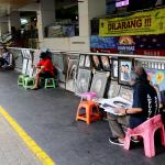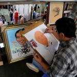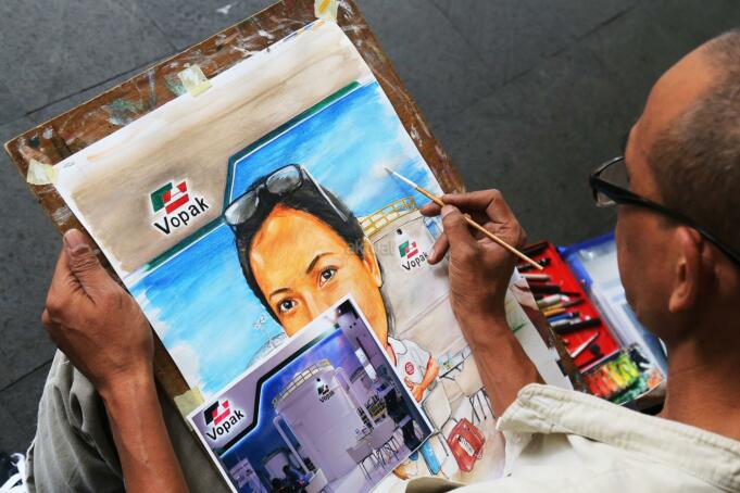 Seniman lukis mengerjakan order jasa lukis di Blok M Square, Jakarta Selatan, Selasa (20/12/2016). Banyak kalangan mengabadikan photo atau peristiwa pribadi agar lebih indah dan menarik dengan tarian kuas di atas kanvas. Harga jasa lukis ini bervariasi, untuk ukuran 2R kita bandrol Rp 400.000 untuk BW dan Rp 600.000 untuk full clour untuk satu wajah. Kalau dua wajah kena tambahan biaya Rp 200.000. AKTUAL/Tino Oktaviano