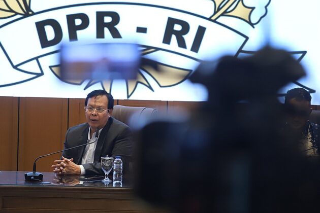 Guru Besar Universitas Trisakti Trubus Rahardiansah menjadi pembicara dalam Diskusi Dialektika Demokrasi, di Ruang Abdul Muis, Gedung Nusantara, Kompleks Parlemen, Senayan, Jakarta, Kamis (12/2/2026).