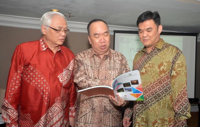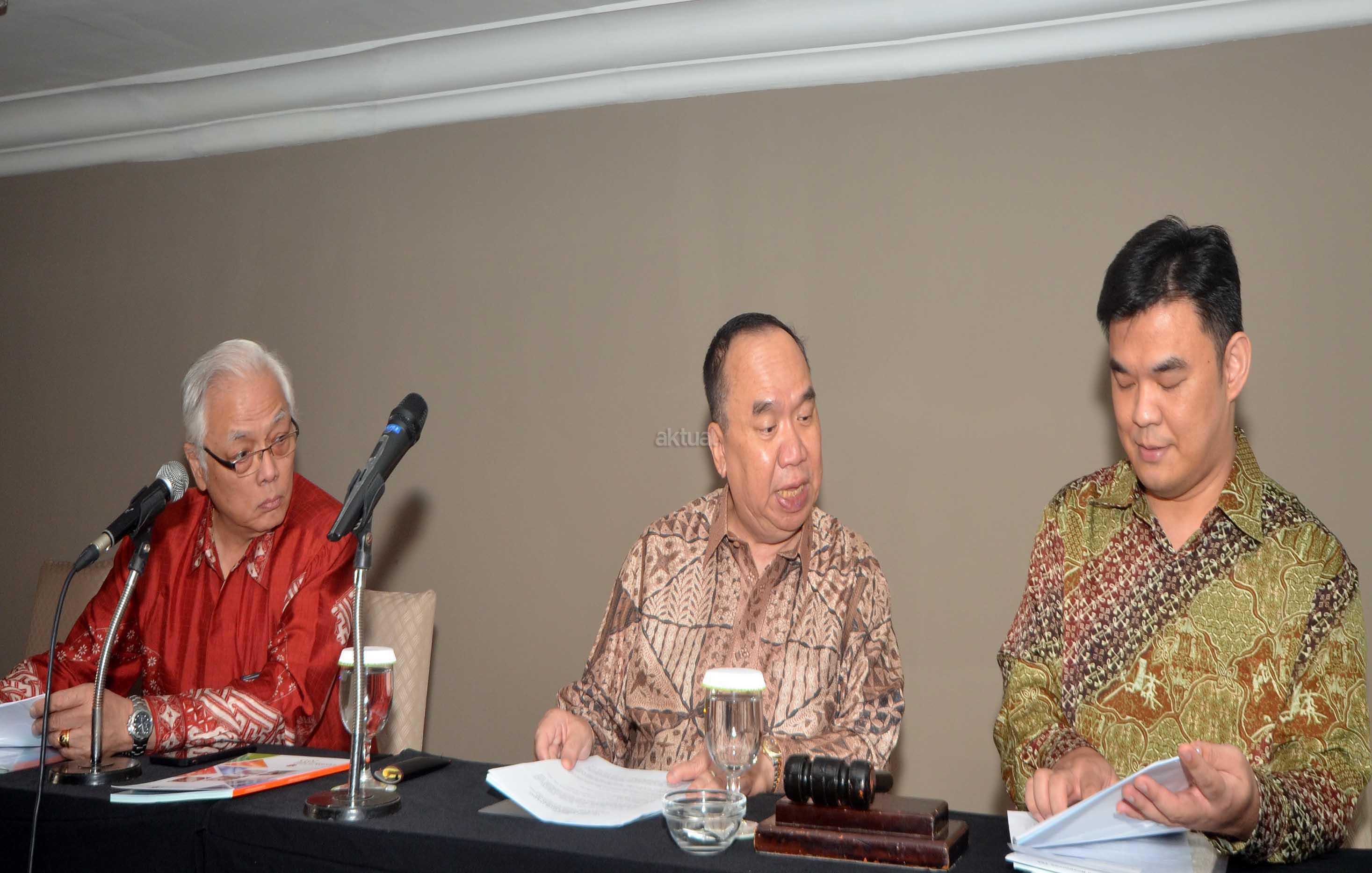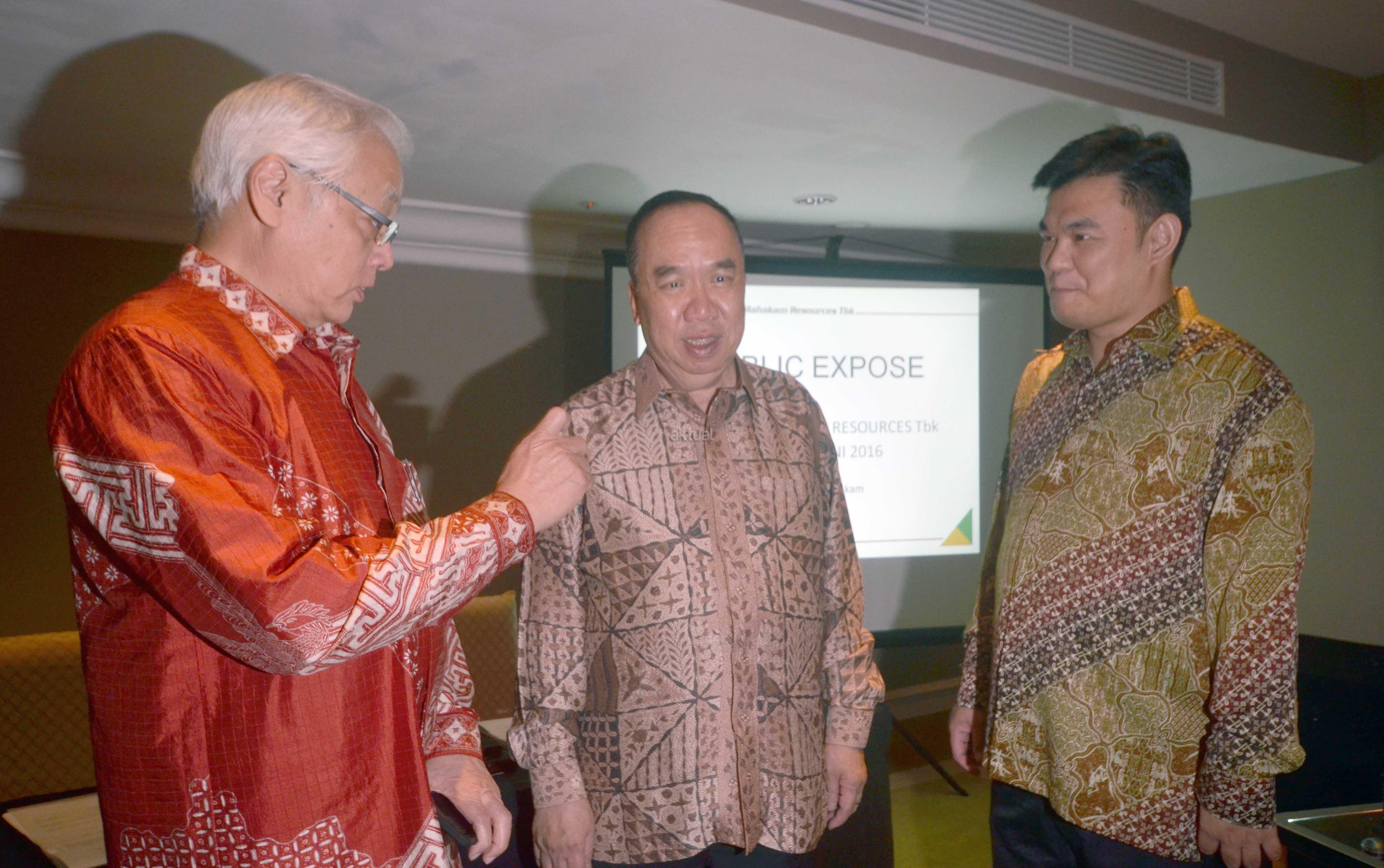 Direktur Utama PT Tirta Mahakam Resources Tbk (TIRTA), Djohan Surja Putra (tengah) berbincang dengan Direktur Independen TIRTA, Alan Budihardja Surya Atmadja (kiri) dan Komisaris Independen TIRTA , Pohan Wijaya Po sesaat sebelum Rapat Umum Pemegang Saham Tahunan di Jakarta, Jumat (3/6). Laba Usaha Tirta sebesar Rp 32 miliar pada kuartal I-2016 lalu, atau naik 28% dibanding di kuartal I-2015. Penjualan mencapai Rp 234 miliar dan laba sebelum pajak tercatat sebesar Rp 42 miliar pada kuartal I-2016. Tirta tidak membagikan dividen untuk tahun buku 2015 dalam RUPST yang akan digunakan untuk memperkuat permodalan Tirta sambil terus melakukan peningkatan penjualan pada tahun 2016 ke depan. Aktual.news/Eko S Hilman