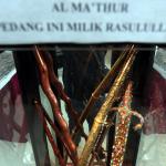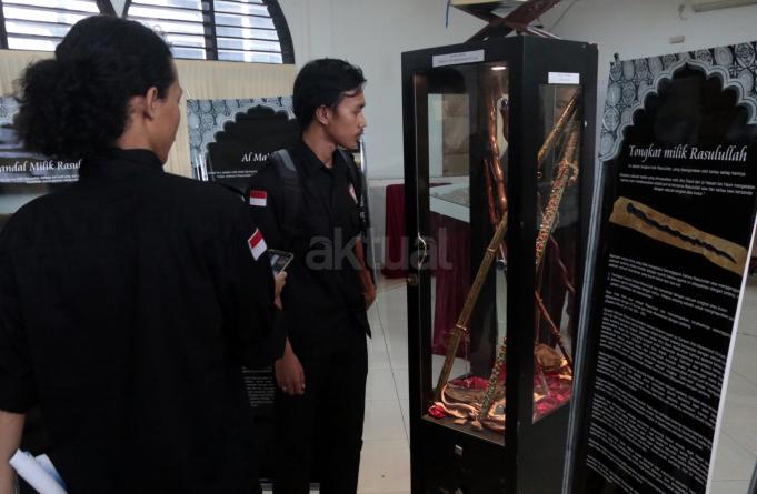 Pengunjung melihat benda-benda replika peninggalan Rasulullah SAW dan Sahabat di Masjid Cut Mutia, Jakarta Pusat, Rabu (18/4/18). Saat ini sedang dipamerkan replika benda-benda bersejarah peninggalan Rasulullah SAW berserta keluarga dan sahabat. Benda-benda yang dipamerkan sarat nilai sejarah dan pameran berlangsung sampai Minggu, 22 April 2018. AKTUAL/Tino Oktaviano