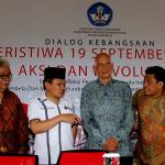 Kanan-kiri ; Guru Besar Departemen Ilmu Komunikasi Fisip UI Zulhasril Nasir, Anggota DPR RI Komisi VIII Khatibul Umam Wiranu, Peneliti dan penulis Biografi Tan Malaka Harry A Pouze, Ketua Majelis Jaringan Pro Demokrasi Bob Randilawe dalam dialog Kebangsaan Peristiwa 19 September 1945 , Massa Aksi dan Revolusi Pemuda di Museum Perumusan Naskah Proklamasi, Jakarta, Minggu (18/9/2016). Dialog kebangsaan yang diselenggarakan oleh Direktorat Jenderal Kebudayaan Kemendikbud RI dan Tan Malaka Institute, sebagai refleksi perjuangan pemuda Indonesia membela dan mempertahankan Proklamasi Kemerdekaan 17 Agusutus 1945. AKTUAL/MUNZIR