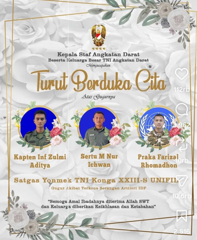 “Keselamatan prajurit adalah prioritas utama. Pemerintah harus segera melakukan evaluasi menyeluruh terhadap penugasan pasukan perdamaian di wilayah tersebut,” ujarnya.