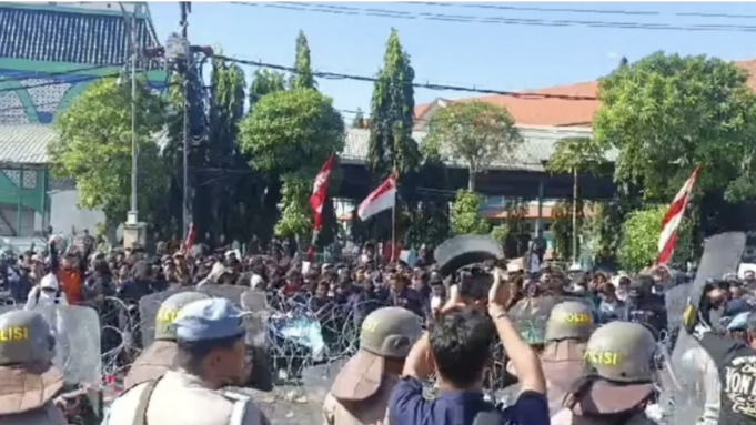 Surabaya, Aktual.news – Kericuhan sempat mewarnai unjuk rasa kawal putusan Mahkamah Konstitusi (MK) yang dilakukan ratusan mahasiswa di depan kantor DPRD Jawa Timur di Jalan Indrapura, Surabaya, Jumat (23/8).