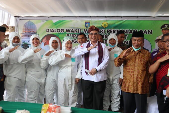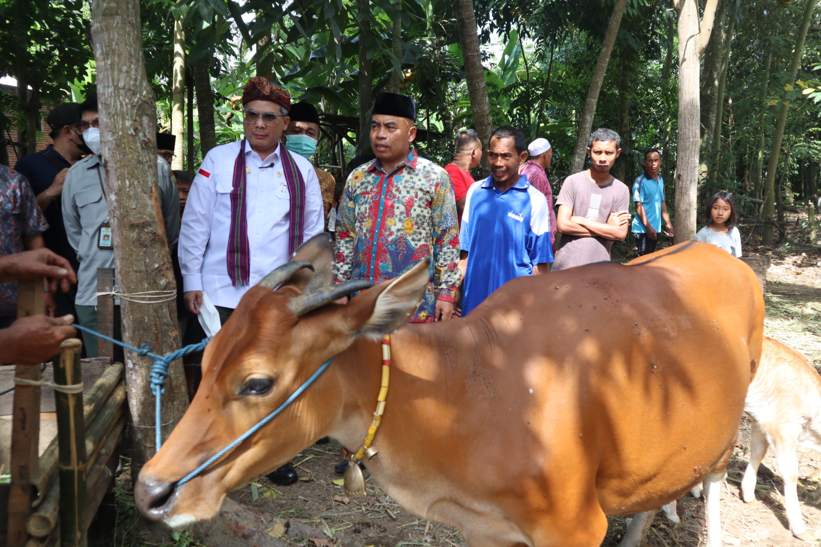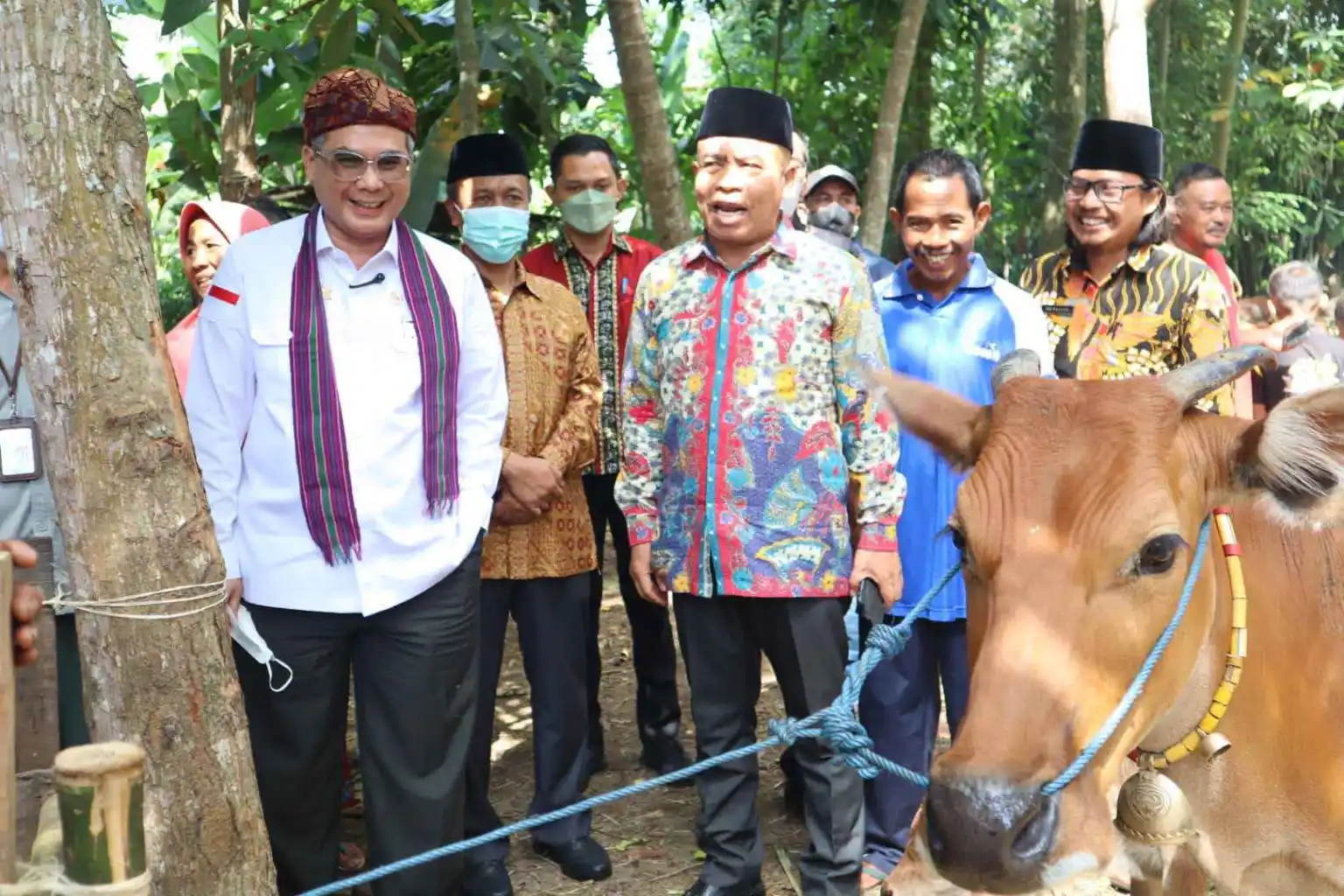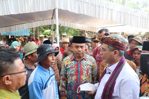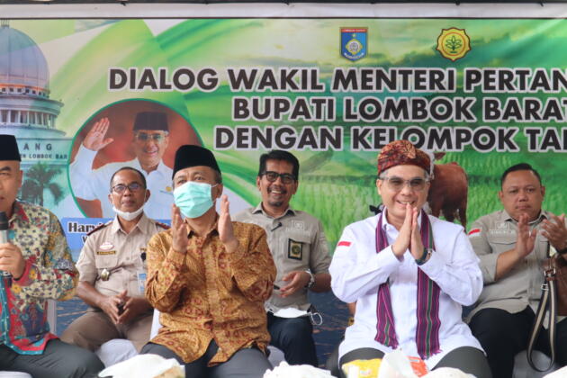 Wakil Menteri Pertanian (Wamentan), Harvick Hasnul Qolbi (berbaju putih) didampingi Bupati Lombok Barat Fauzan Khalid dan Kepala Dinas Pertanian Lalu Winengan meninjau peternakan sapi di Desa Jembatan Kembar, Kabupaten Lombok Barat. FotO: Aktual/Hilmi.