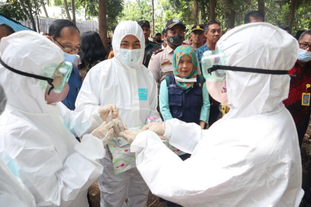 Petugas penanganan wabah PMK yang menjangkit ribuan sapi di Desa Jembatan Kembar, Kabupaten Lombok Barat. FotO: Aktual/Hilmi.